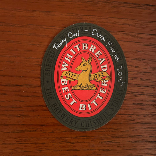 A House Sparrow painted onto a Long John’s Whiskey drinks mat from the 1960s. Beermat painting. Watercolour.