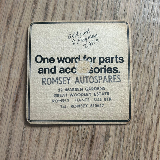 A Goldcest painted onto a Motorquip beer mat from the 1970s. Beermat painting. Watercolour.