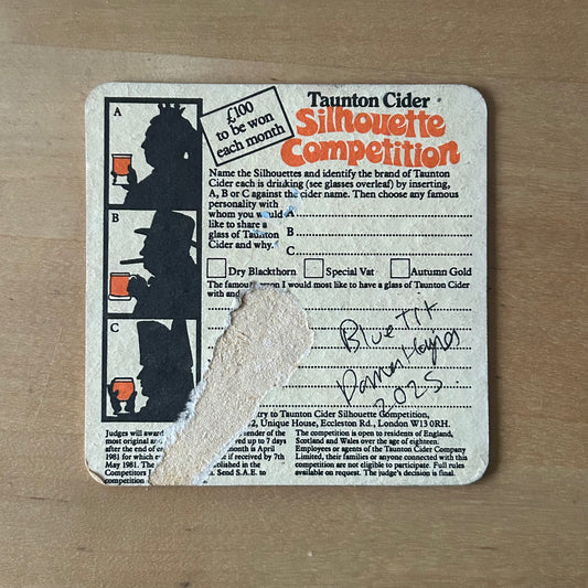 A Blue Tit painted onto a Taunton’s cider drinks mat from the 1970s. Beermat painting. Watercolour.