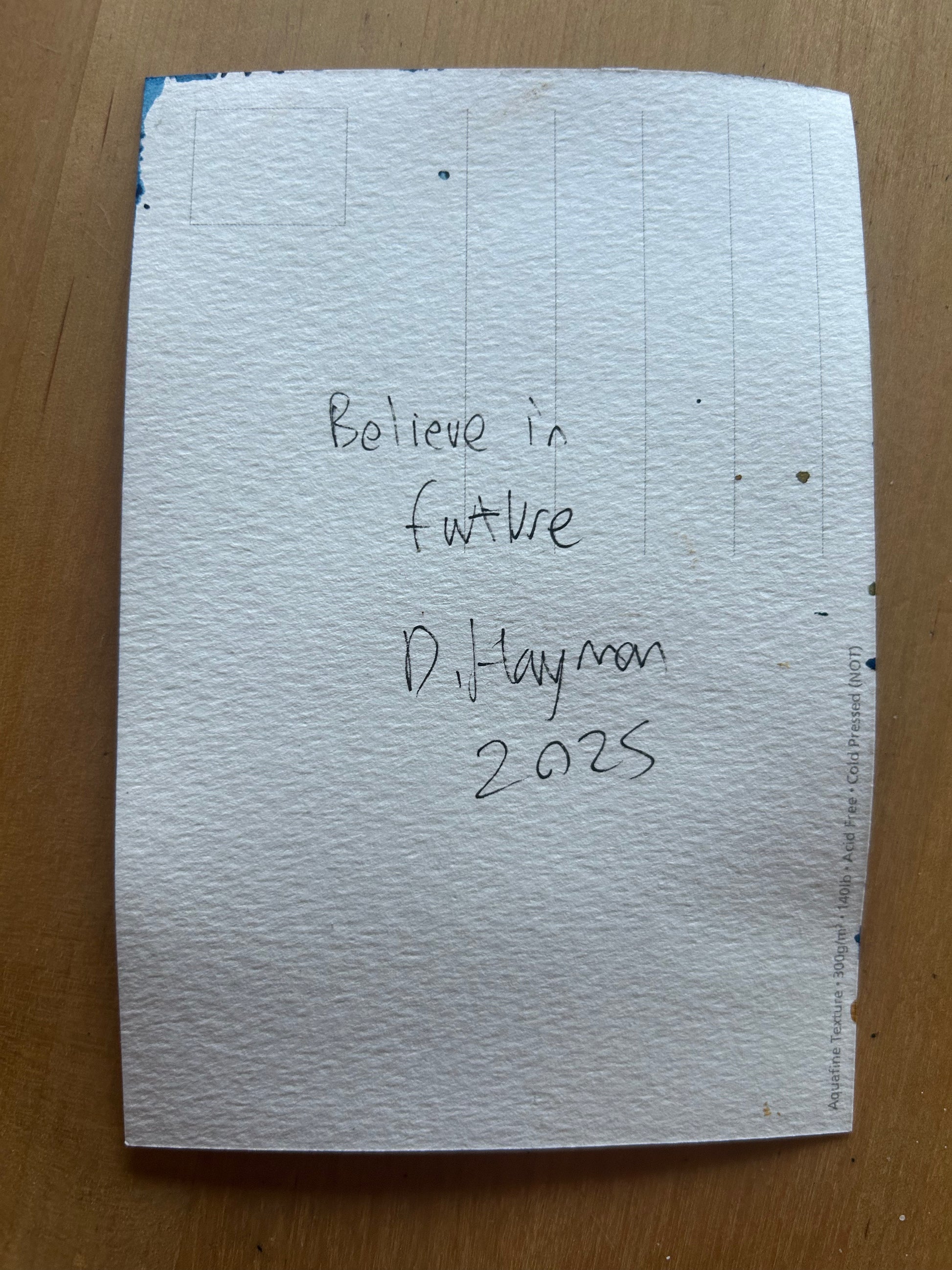 ‘Believe in Future’ Postcard painting of a Lego Spaceman figure 1978.