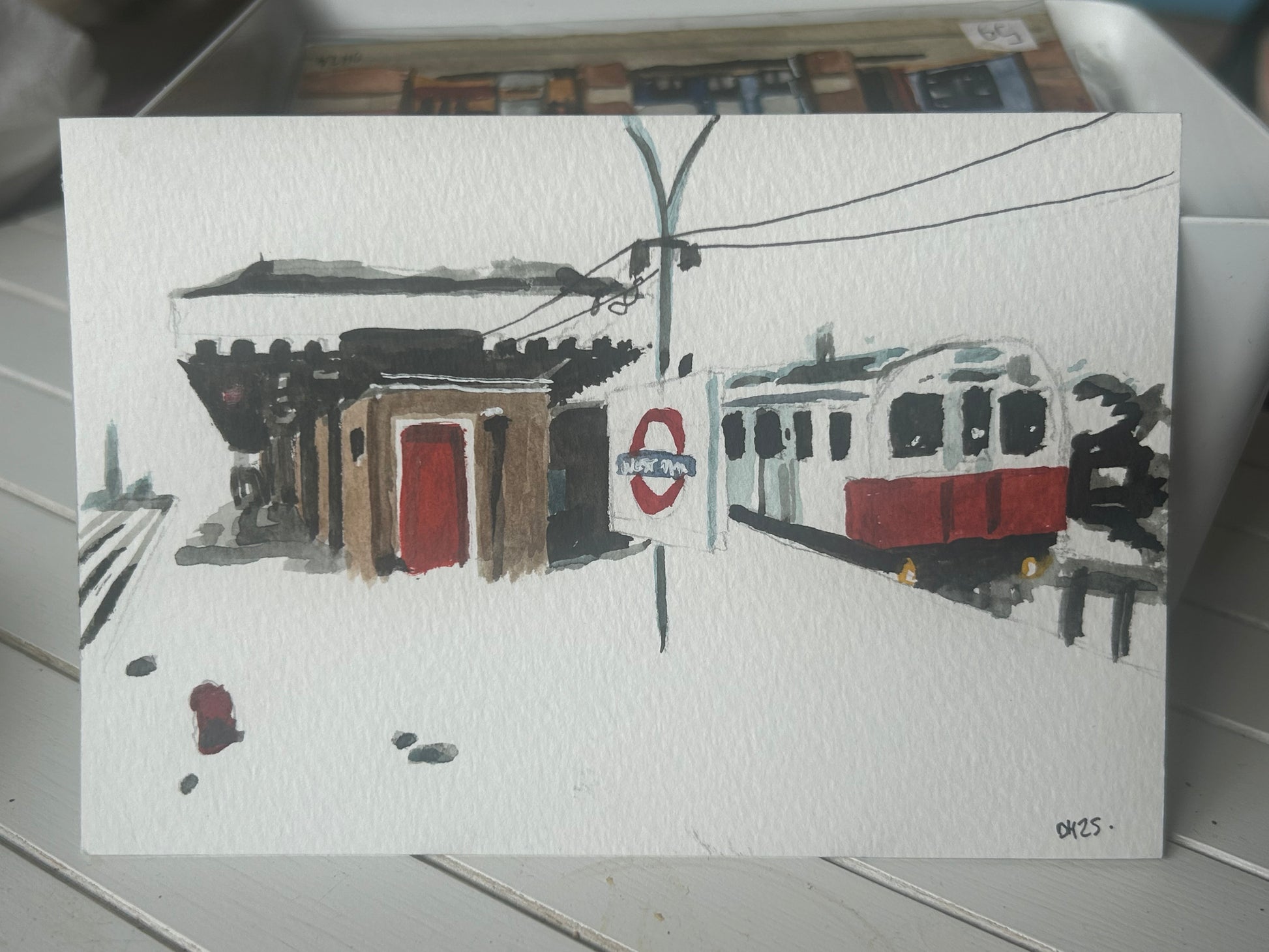 West Ham (1990) Underground Station, London. Postcard painting. Watercolour.